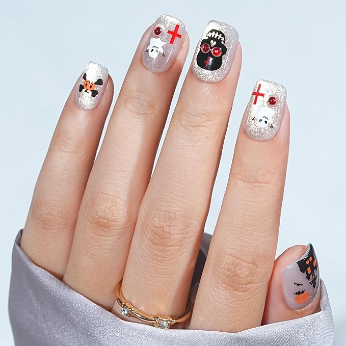 - Soft & Flexible: Made with soft gel, our short halloween press on nails are gentle on your nail beds and feel like real nails. They fit the nail bed perfectly with a seamless cuticle line