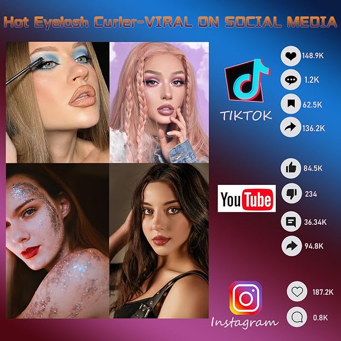 - Adjust Temperature Mode - Our heated eye lash curler comes with 3 temperature settings from 150°F to 190°F to gently curl your lashes and create stunning curls for amazing curling effect for different types of eyelashes, will not frizzing or pinching them