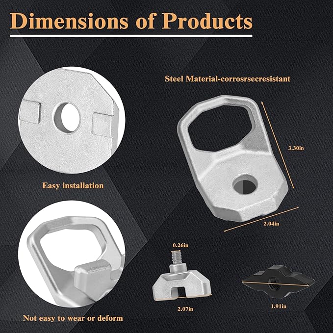 - 【Easy Installation】This kit is equipped with two D-rings, making it more convenient.First, go to the car body, find the hole on the car body guide rail, place the lock along the D-ring on the hole, tighten the fixing nut, and complete the installation