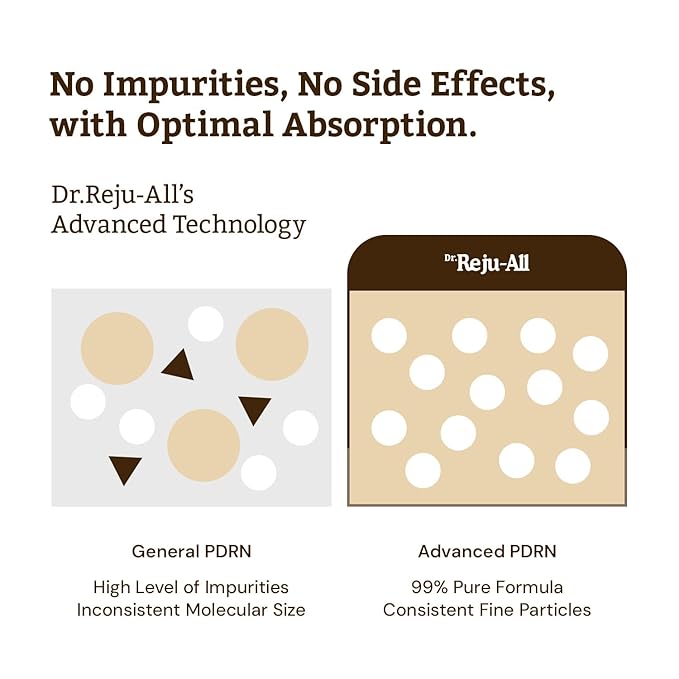 - ADVANCED PDRN WITH 99% PURE SALMON DNA — Refined through advanced purification methods for high purity. The uniform micro-sized particles are designed for smooth application, reflecting innovation in Korean skincare formulation.