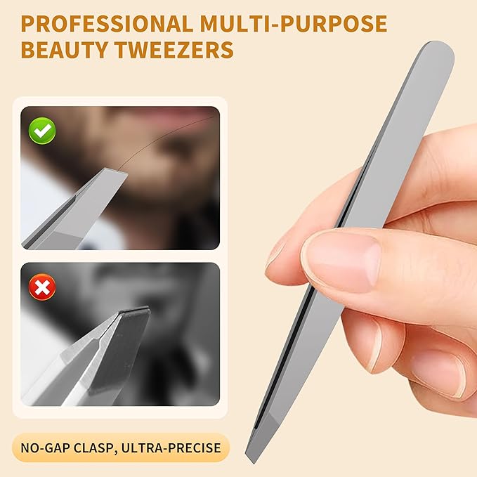 - Professional Precision Tweezers – Made from high-grade stainless steel with sharp, aligned tips for accurate plucking. Grips even the shortest, thinnest, or ingrown hairs with ease while reducing discomfort during use. Durable, hygienic, and easy to clean.