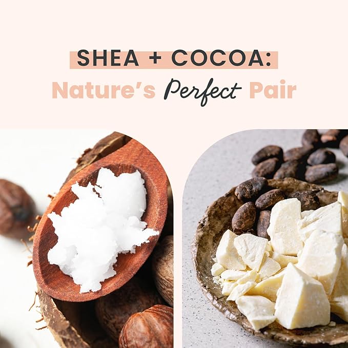 - BOTANICAL BUTTERS + ANTIOXIDANTS: A rich blend of shea, mango, and cocoa butters paired with plant-based antioxidants to deeply moisturize, nourish, and enhance your skin’s appearance.