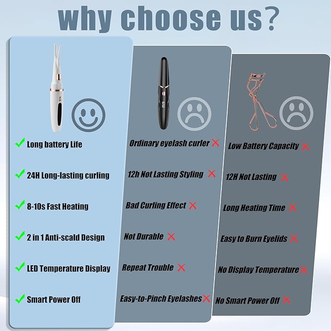 - Adjust Temperature Mode - Our heated eye lash curler comes with 3 temperature settings from 150°F to 190°F to gently curl your lashes and create stunning curls for amazing curling effect for different types of eyelashes, will not frizzing or pinching them