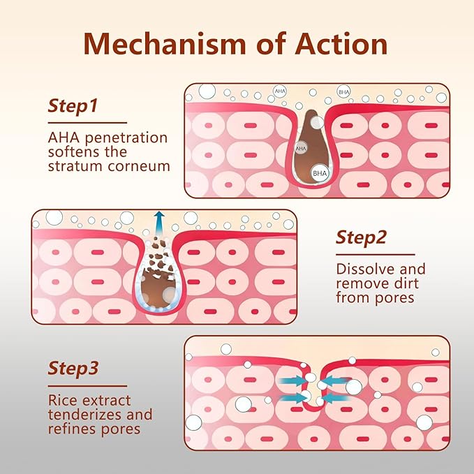 - 【Gentle Exfoliation】 Lactic acid (AHA) gently dissolves dead skin cells, salicylic acid (BHA) vertically unclogs pores, and pharmacognate (PHA) protects the skin barrier and improves skin texture. Effectively exfoliates without damaging the skin