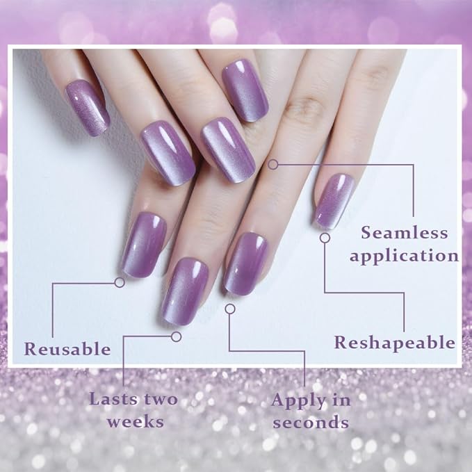 - ✨ Salon-Quality Cat Eye Effect——Achieve a mesmerizing cat eye effect with these press-on nails, featuring a glossy black chrome finish that catches the light beautifully