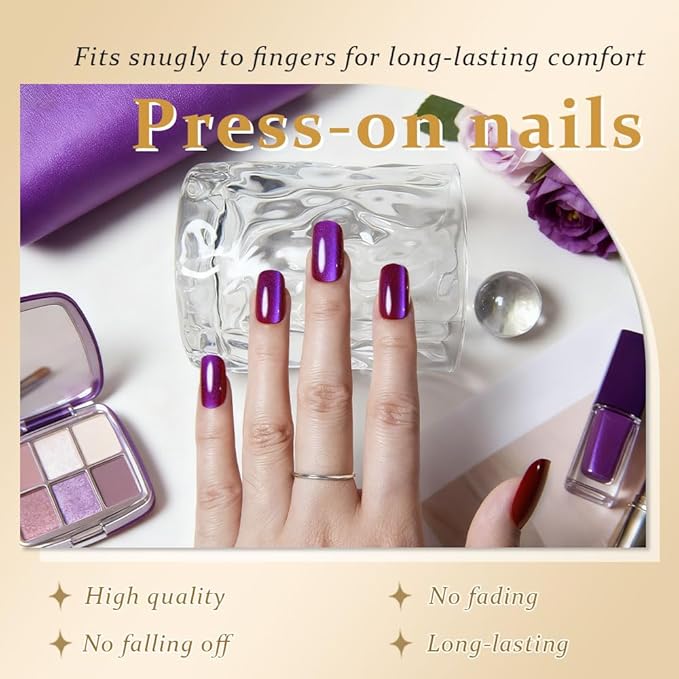 - ✨ Salon-Quality Cat Eye Effect——Achieve a mesmerizing cat eye effect with these press-on nails, featuring a glossy black chrome finish that catches the light beautifully