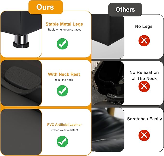 - 【Body-Contouring Ergonomics】This shampoo chair features an ergonomic shape and contour curves, providing perfect support to the body during treatment. The concave and convex lines provide the best weight distribution, reducing the fatigue of both customers and stylists. It also includes a foot pedal to accommodate different user preferences. This chair offers professional functionality and relaxing comfort for an ideal extended salon meeting.