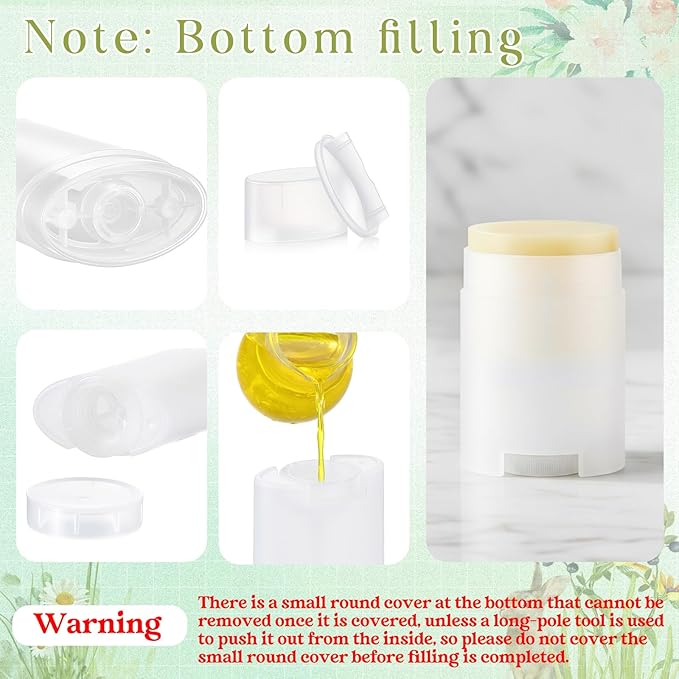 - Twist up Design and Fill from the Bottom: every deodorant container has a turning wheel mechanism, twist up bottoms, adjust up and down nicely; Please fill directly from the bottom hole of the container, never filling from the top, please do not fill it too full, wait for the liquid to solidify/cool, and then cover with the included round cap, and you can dispense the deodorant by turning the wheels on the bottom, nice for making your own deodorant and cosmetics