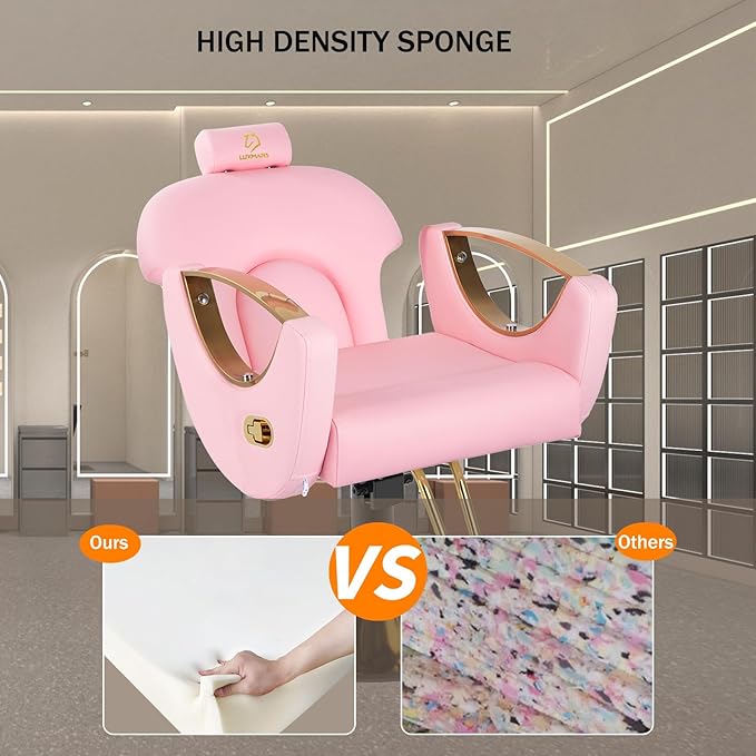 Barber Chair,Styling Chair|Adjustable Height Reclining Salon Chair, Barber Chair for Stylist with Removable Headrest,SPA Equipment for Barbershop,Beauty Salon,Spa (Pink New)