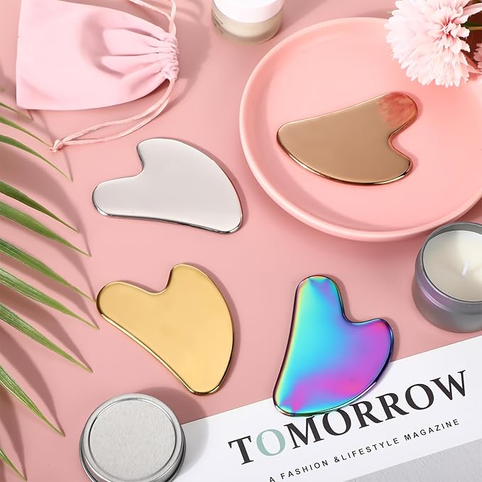 - 4 Piece Metal Gua Sha Set: this complete collection includes four stainless steel gua sha tools in silver, gold, rose gold, and fantasy colors; Each piece is crafted from genuine 304 stainless steel for facial and body massage