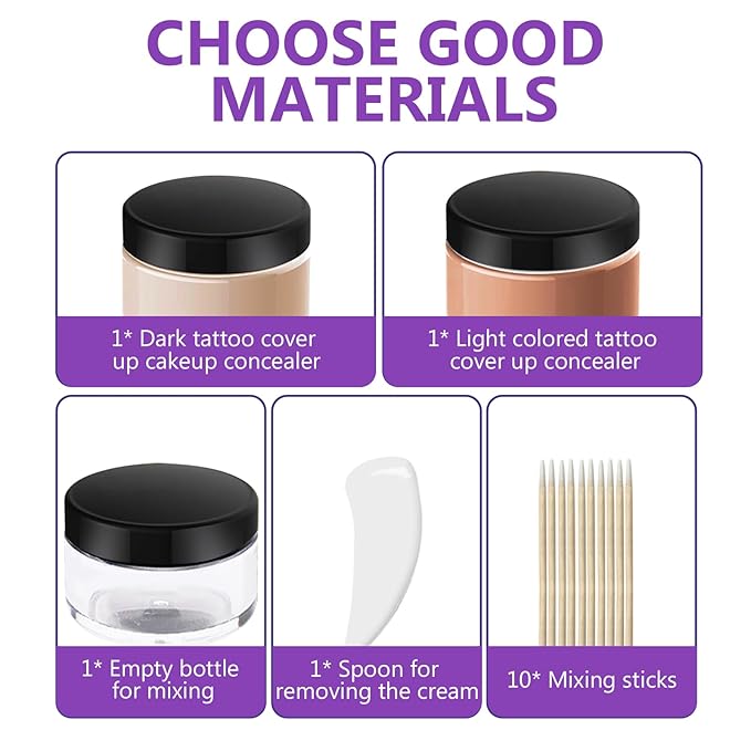 - 2 Colors Can Be Mixed: The tattoo concealer comes in both dark and light colors; it can be used alone or mixed; you can mix the color to suit your skin tone; this concealer is suitable for all skin tones.