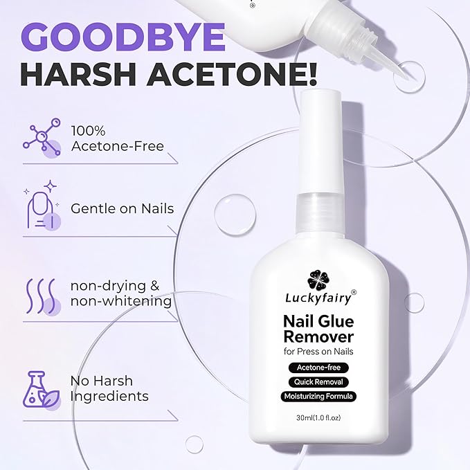 - 【NON-ACETONE Gentle Formula】Say goodbye to glue residue, damaged nails, and unpleasant smells! Our nail polish remover is acetone-free and enriched with nourishing ingredients. It effectively breaks down glue without causing dryness, whitening, or irritation. Safe for skin and gentle on your nails, gel nail polish remover leaves them feeling healthy—not brittle or weak