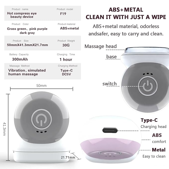 - USED METHOD: Use the eye massager to gently massage the eye area. Perfectly paired with eye cream/essence to promote absorption. The warm massage promotes blood circulation, improves the firmness and elasticity of the skin around the eyes, and keeps the skin in its best condition for a long time