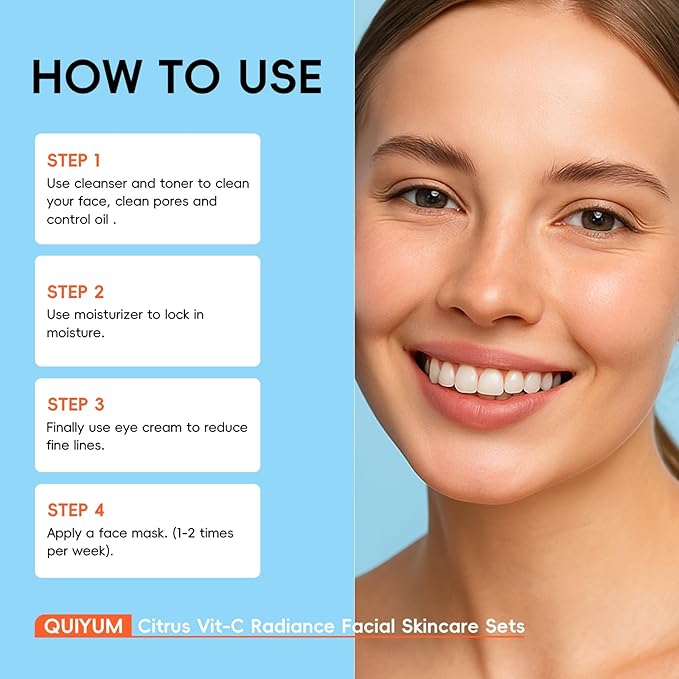 - 🍊5-Step Set for Oily Skin:Includes cleanser, toner, eye cream, moisturizer, 2 masks. Deep cleanses, balances oil, hydrates lightly, keeping skin fresh all day