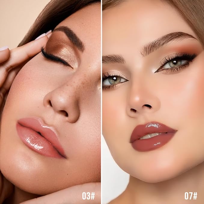 Nourishing High-Shine Lip Gloss Set,Hydrating & Moisturizing Lip Tint, Non-Sticky, Long-Lasting Glossy Lip Stain,Softens & Plumps Lips for Smooth,Gentle Formula for Dry Lips,03+07