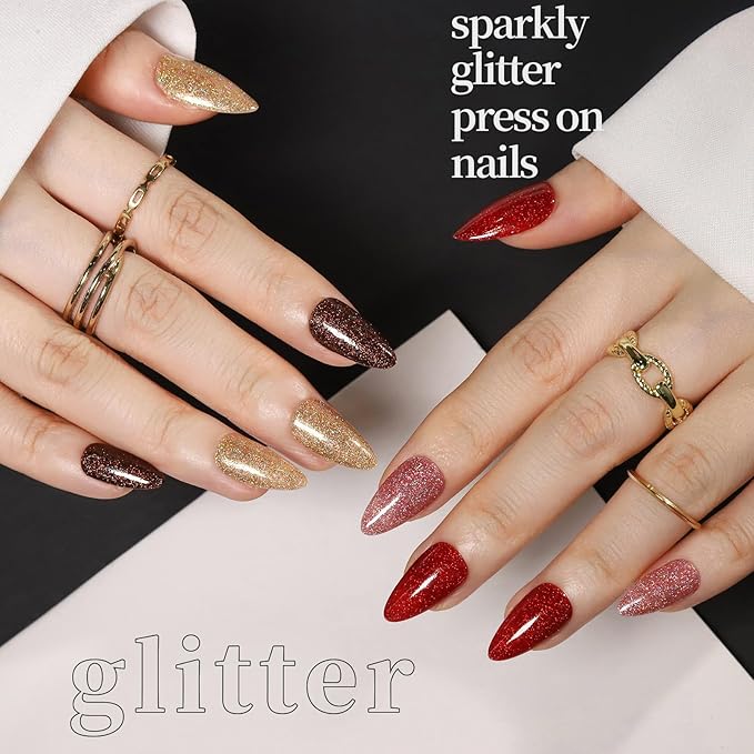 - Wide Application: Whether you're looking for romantic sparkle, classic elegance, or festive atmosphere, our fake nails kit will bring you the experience you've imagined. Both cat eye press on nails and glitter press on nails can bring you more sparkly effect. False nails can be adapted to various occasions. All the press on nails and the tools will be packed in a clip-on box, more convenient for you to store and carry out. Also ideal as gift.