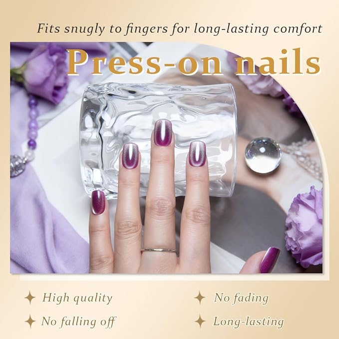 - 【Captivating Cat Eye】The allure of the cat eye is undeniable, and our press-on nails capture its essence perfectly, with their shimmering, dimensional look, they elevate any outfit, making you the center of attention wherever you go