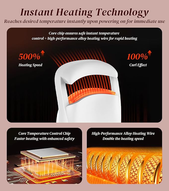 - 【Suitable for all types of eyelashes】: Whether your eyelashes are short, long, thick, or thin, this heated eyelash curler can accurately adapt and meet all your daily makeup needs.