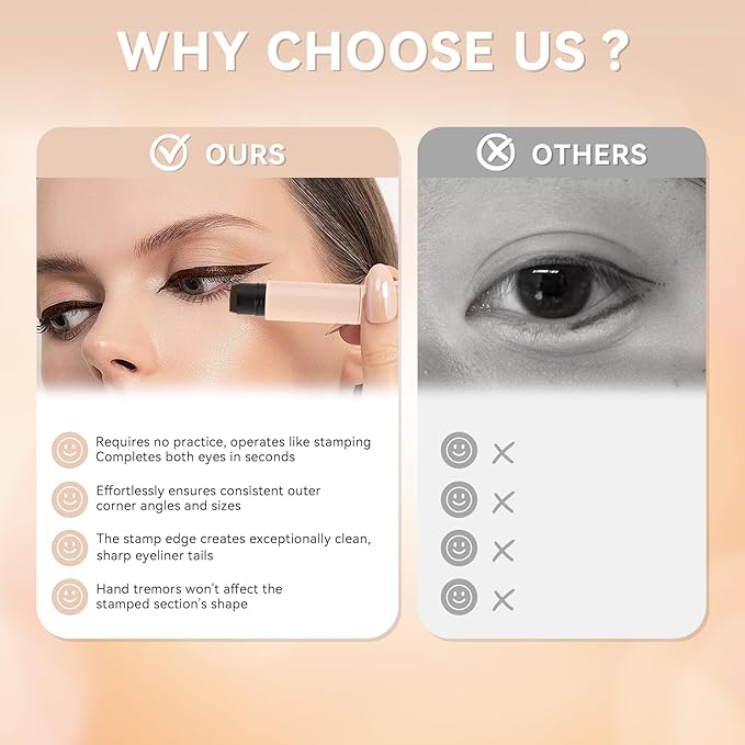 - Dual Wing Shapes: " Soft & Bold "Two stamp designs cater to your style—choose a subtle flick or a dramatic wing. The versatile shapes suit all eye types, including hooded and monolidded eyes.