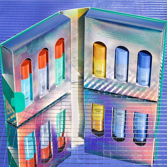 - Put Bubble on Your Wish List - This 6-piece skincare travel kit includes everything you need to glow! A lightweight gel cleanser, two serums, an eye cream, a hydrating water cream, and our iconic Slam Dunk moisturizer. Say hey to clear, hydrated, dewy skin; anytime, anywhere.