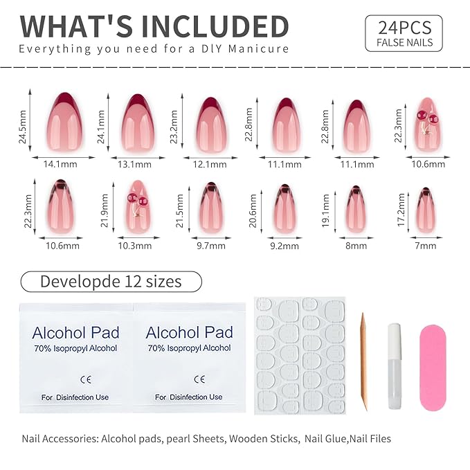 - Complete 24PCS Kit – Includes 24 press on nails in assorted sizes, plus glue, adhesive tabs, nail file, and cuticle stick for an easy salon-like manicure at home.