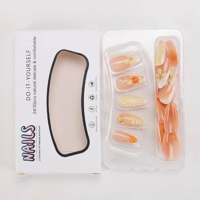 - Includes Everything You Need:You will receive 24 pcs flower nails press ons,1 nail file,24 pcs jelly glue,1 wooden stick.These perfect combinations will make it easier for you to create your floral press on nails style according to your needs