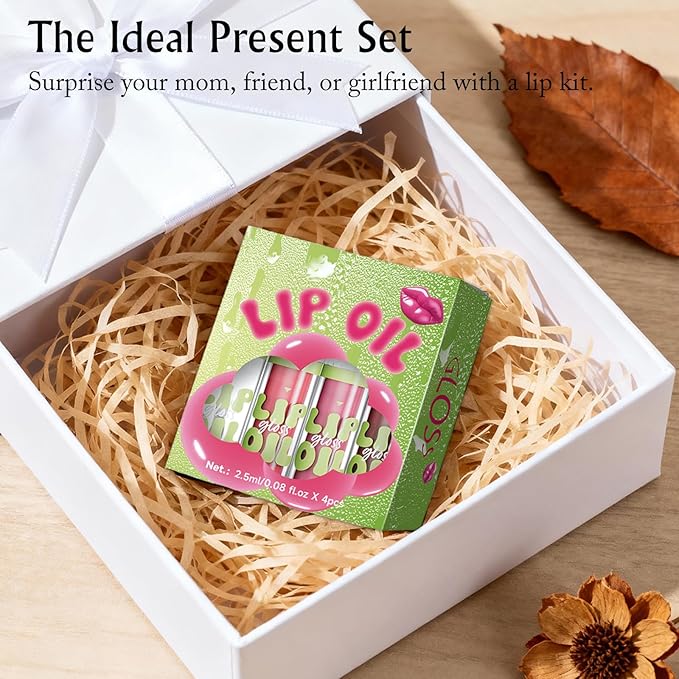 - Nourishing & Shiny Lip Oil Gloss: Wugbc lip oil formula is infused with moisturizing ingredients deliver a high-shine, non-sticky finish. The lip gloss set includes 4 colors, allowing you to create multiple looks from natural to bold