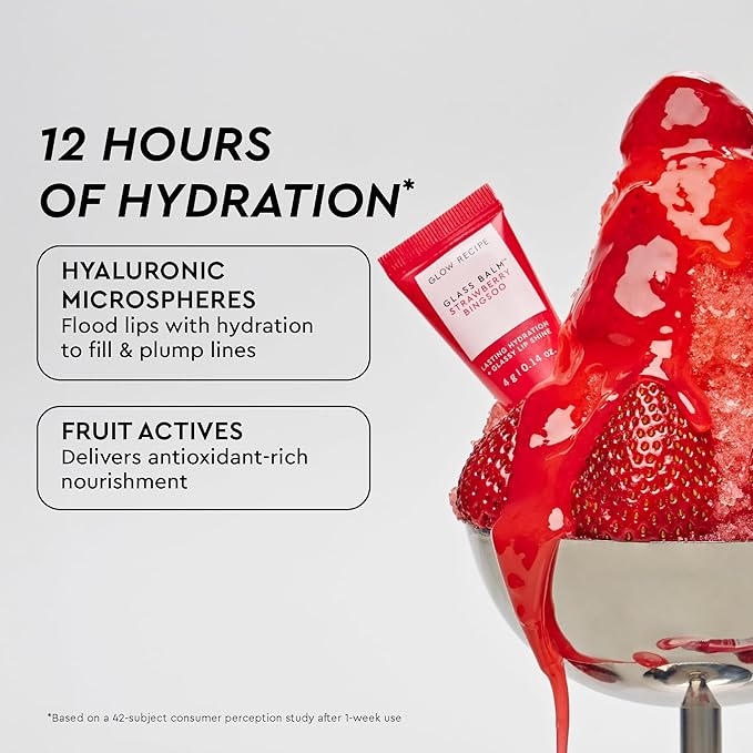 - Gloss & Hydration with Glass Balm - Strawberry Bingsoo Glass Balm cushions lips with up to 12 hours of hydration, leaving them soft, plump, and glossy with a sheer strawberry tint.
