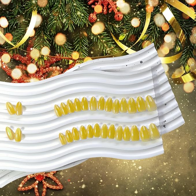 - Package Includes: 30 pcs gold cat eye nails kit. each box includes 30 almond press on nails medium, 1 sheet of 24 sticky nail pieces, 1 cuticle stick, 1 double sided nail file and handmade acrylic press on nails cleaning pads, a small tube of nail glue, All the tools you need to apply the nails are included in one nail kit