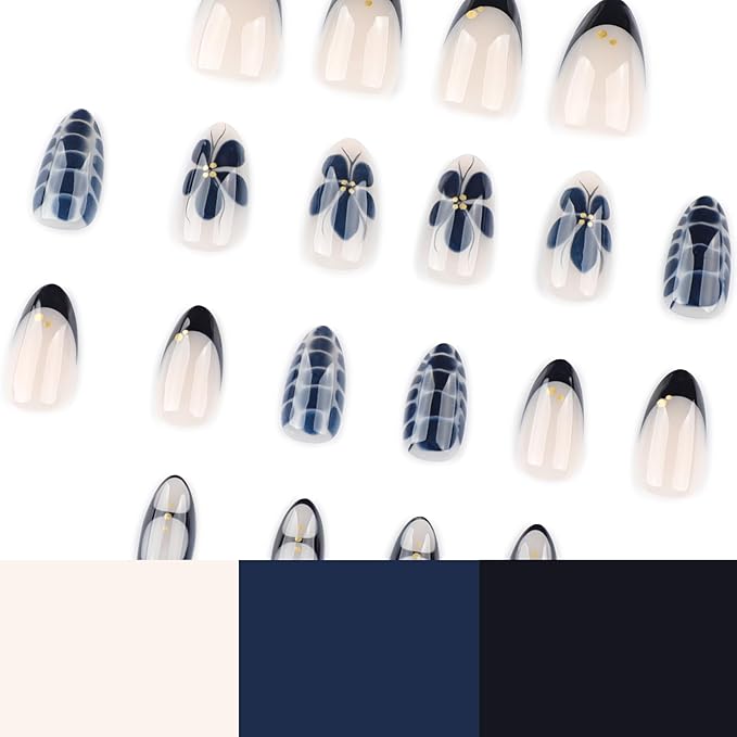 - Package Includes: 24 pcs stick on false glue on nails kit, each box includes 24 short press on nails, 1 sheet of 24 sticky nail pieces, 1 cuticle stick, 1 double sided nail file and gel press on nails cleaning pads, a small tube of nail glue,All the tools you need to apply the nails are included in one set