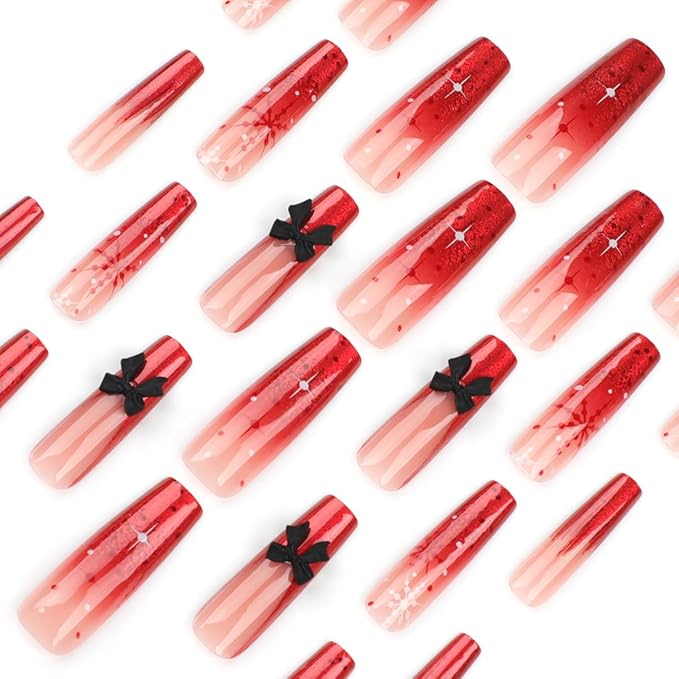 - Perfect for Christmas & New Year: These long square press-on nails feature a festive red French tip with elegant snowflake designs. Perfect for holiday parties, family gatherings, or adding seasonal sparkle to your celebrations