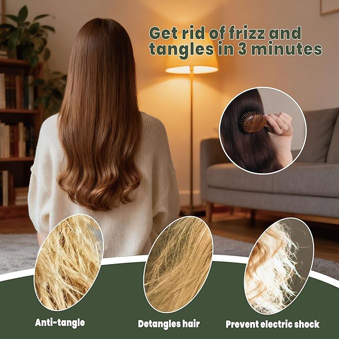 - Gentle Scalp Massage for Relaxation: The wooden brush features rounded bristles that glide smoothly through your hair, gently stimulating the scalp to help ease tension and refresh your mind. Ideal for daily scalp care and maintaining a healthy scalp environment.