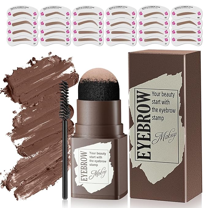 Eyebrow Stamp Stencil Kit - 24PCS Eyebrow Stencils for Perfect Brow, Eyebrow Stamp Long-lasting Waterproof & Smudge-Proof, Eyebrow Kit with Eyebrow Brush for Thin & Thick Brow (Dark Brown)