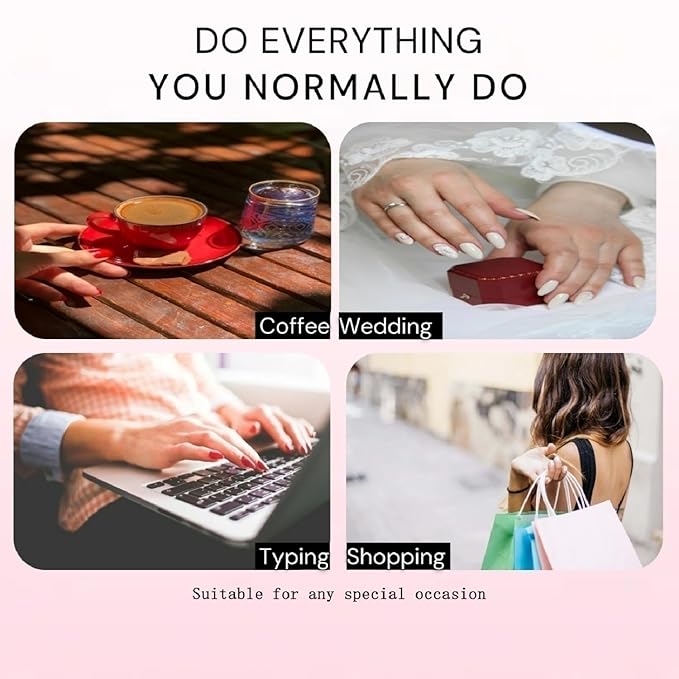 - "24PCS Full Cover Set for Versatile Use The package includes 24 pieces in various sizes, ensuring a perfect fit for all your nails. Whether for daily wear, parties, weddings, or special events, these nails are ideal for women seeking a quick and glamorous nail transformation."
