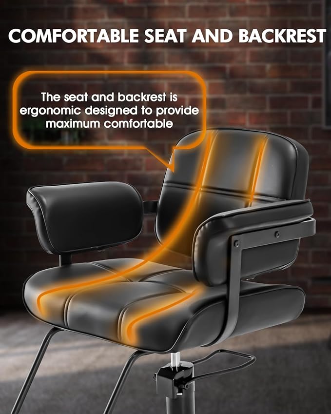 - SUPERIOR COMFORT FOR LONG SESSIONS】Engineered with high density foam cushions and extra wide seating, the chair adapts to clients of all body types, ensuring exceptional comfort during extended hairdressing or haircutting appointments