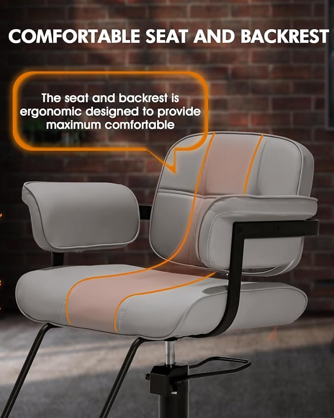 - SUPERIOR COMFORT FOR LONG SESSIONS】Engineered with high density foam cushions and extra wide seating, the chair adapts to clients of all body types, ensuring exceptional comfort during extended hairdressing or haircutting appointments