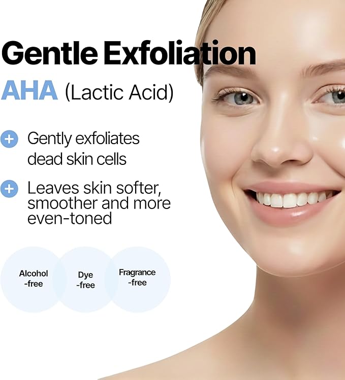 - [Gentle Exfoliation] First step to glass skin! This exfoliating toner, formulated with Lactic Acid (AHA), gently removes dead skin cells, leaving the skin smoother, calmer, and refreshed.