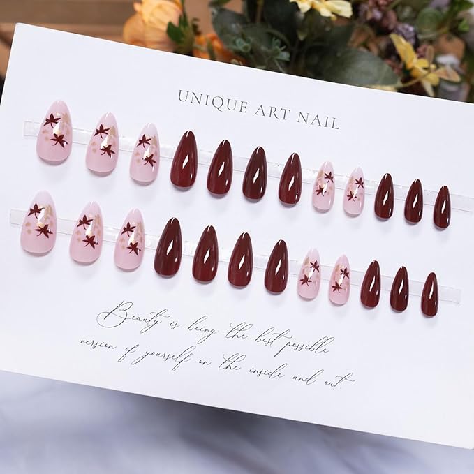 - Convenience: Fall press on nails can help you save time while decorating your nails better.Change your favorite nail design anytime, just a few minutes, you can use jelly glue stickers / glue to stick these brown glue on nails onto your nails