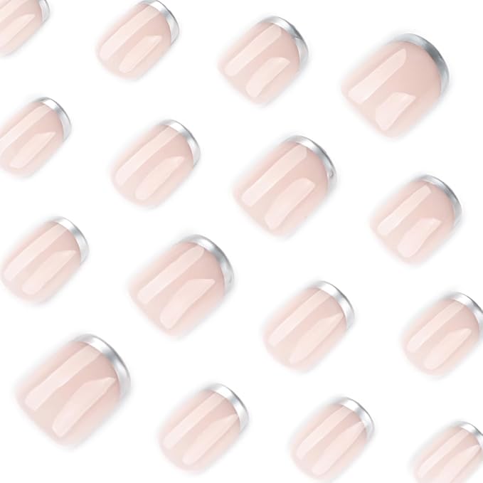- Convenience: Silver french tip fake nails with design can help you save time while decorating your nails better.Change your favorite nail design anytime, just a few minutes, you can use jelly glue stickers / glue to stick these square stick on nails onto your nails