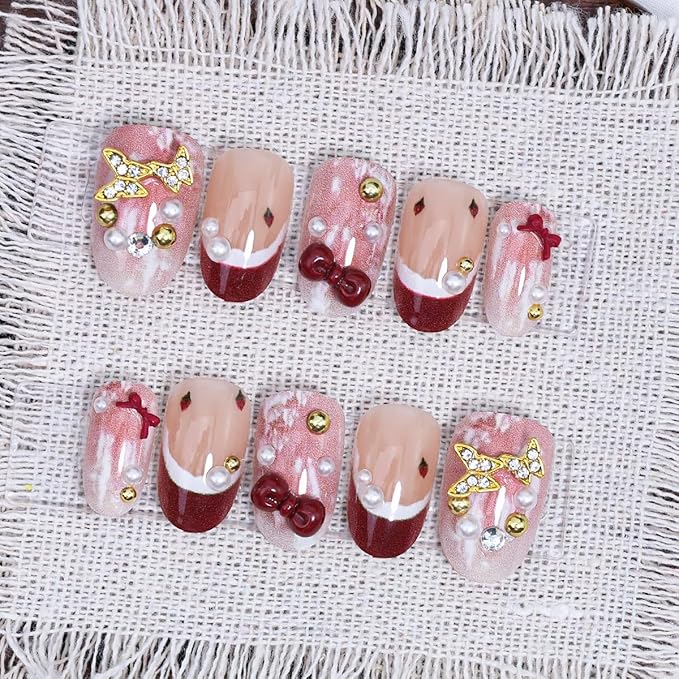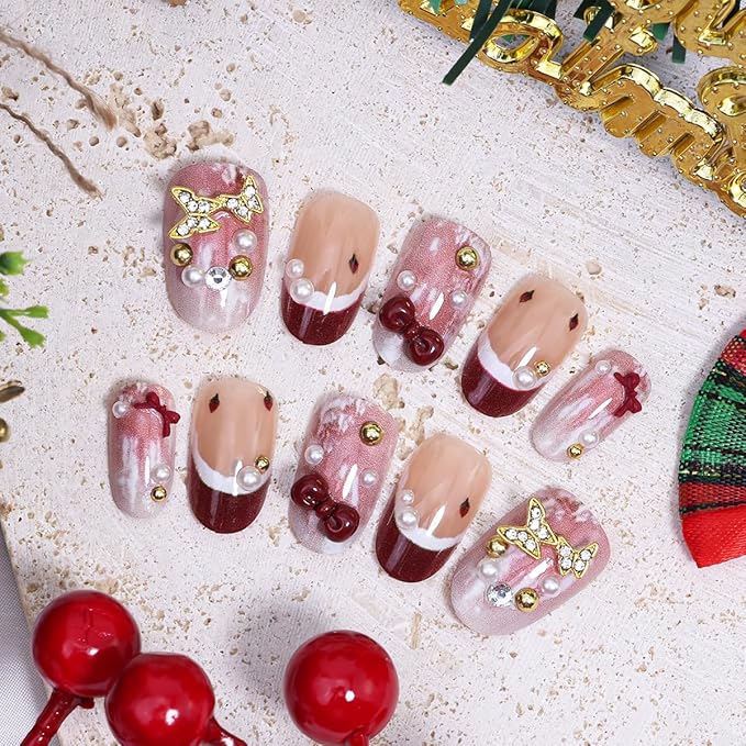 - Comfortable to Use: Theses cute nails design Christmas glue on nails are designed according to the curvature of female nails, you can cut the extra part off the with nail clipper or nail file,and make your Christmas artificial nails more exquisite