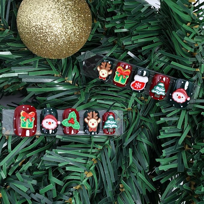 - Convenience: Winter false nails can help you save time while decorating your nails better.Change your favorite nail design anytime, just a few minutes, you can use jelly glue stickers / glue to stick these Christmas stick on nails onto your nails