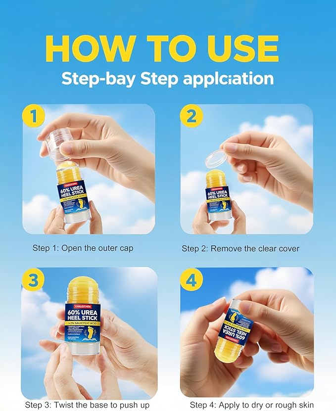 - HYGIENIC & PORTABLE STICK DESIGN – Designed for easy, clean application, this twist-up urea cream stick allows hands-free, mess-free use—no need to scoop or touch the cream. The solid balm applies directly to the skin for precise care of heels, feet, or elbows. Because it’s a solid formula, the stick may slightly soften in warm temperatures or firm up in cooler ones—this is completely normal and does not affect product quality or performance. Compact and travel-friendly, it's ideal for home, gym, or office.