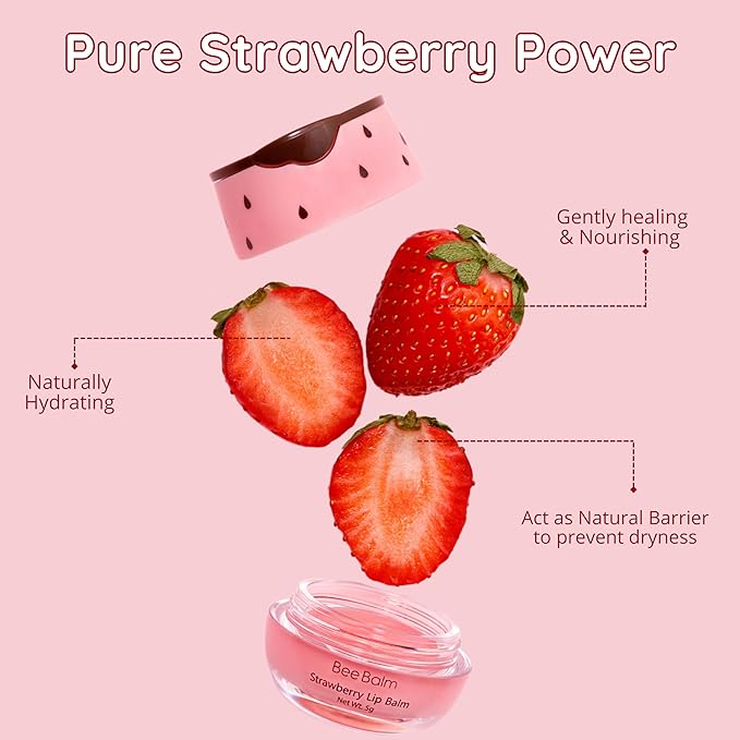 Original My Bee Balm Lip Balm - Strawberry Hydrating Balm Honey Pot for Dry, Chapped & Cracked Lips with Propolis, Honey & Vitamin E - Soften, Smooth & Reduce Lip Lines (Pack of 2)