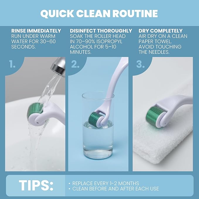- EASY-TO-USE DERMA ROLLER: The included roller is designed with short, fine needles for a gentle rolling experience. Compact, lightweight, and simple to incorporate into your self-care practices.