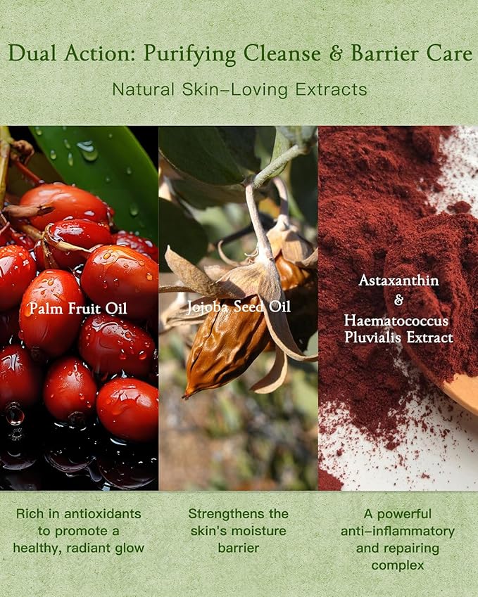 - Safe Ingredients : Infused with 12 natural skin-nurturing extracts, including Palm Fruit Oil, Jojoba Seed Oil, and Astaxanthin & Haematococcus Pluvialis Extract, this cleansing balm gently removes makeup while protecting and strengthening the skin’s natural barrier.