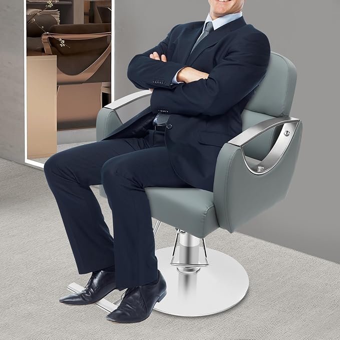 - 【Comfort-Focused Hair Chair with Luxury Support】Designed for all-day comfort, this hair chair features a thick, resilient sponge cushion and contoured backrest that align with the body’s natural curves. The glossy electroplated footrest offers a relaxing spot for clients to rest their feet. An ideal Salon Chair for Hair Stylist who values both style and client comfort.