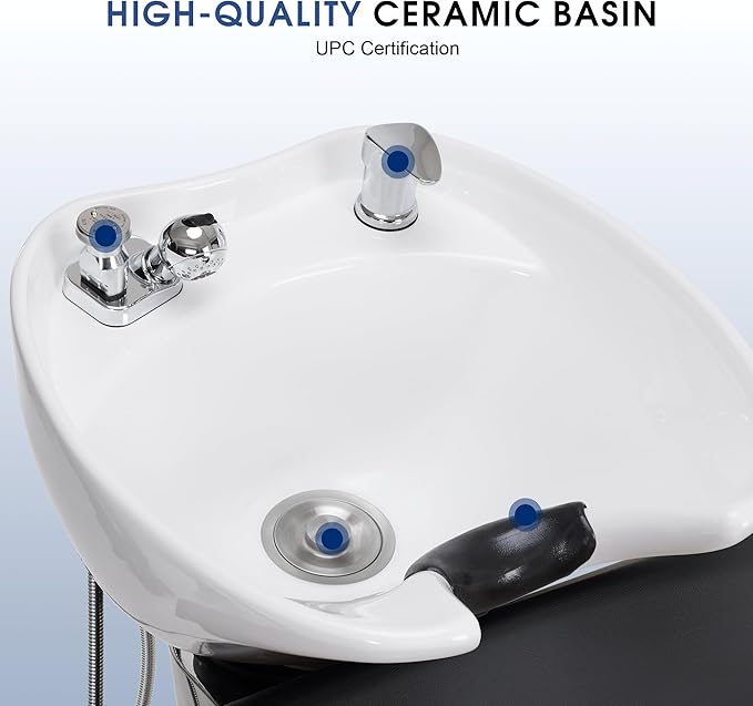 - Adjustable Bowl for Different Clients: The ceramic shampoo bowl is designed for durability and features a swing function for easy adjustment, providing better comfort for people of various heights. The neck protector can also reduce neck pressure and increase comfort.