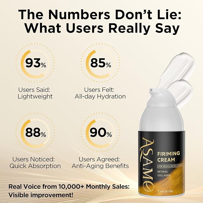 - EXPERTLY FORMULATED FOR MAXIMUM EFFECTIVENESS: Developed with precision, our lightweight, luxurious neck cream—engineered for targeted neck tightening and lifting—is expertly balanced to tighten, firm, and improve the elasticity of the delicate neck and décolleté area (outperforming generic skin tightening cream for body in this specific zone). With continuous use, it provides day-long hydration, leaving the skin visibly lifted, smooth, and nourished—rivaling the results of premium firming neck cream and neck creams for tightening and firming.