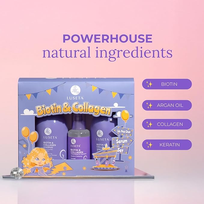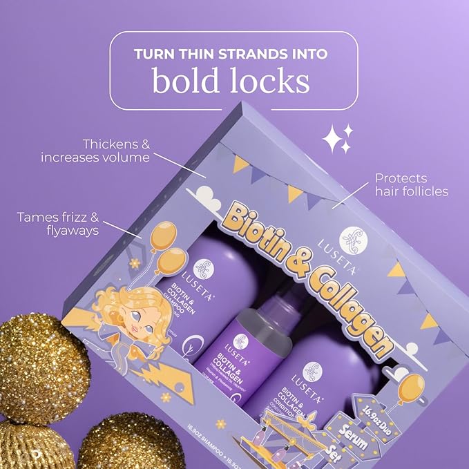 - FOR THINNING HAIR: L LUSETA biotin & collagen biotin and conditioner combo promotes hair strength & thickness. The LUSETA hair oil can add volume and dimension for a fuller look.