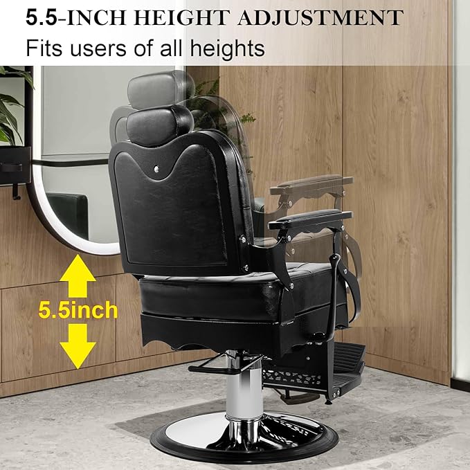 - 【Height Adjustable】: This highly adjustable barber chair can swivel 360 degrees, the backrest can be tilted up to 135 degrees, height adjustable up and down 5.5 inches. The seat is wide and comfortable. It can meet the various needs of customers